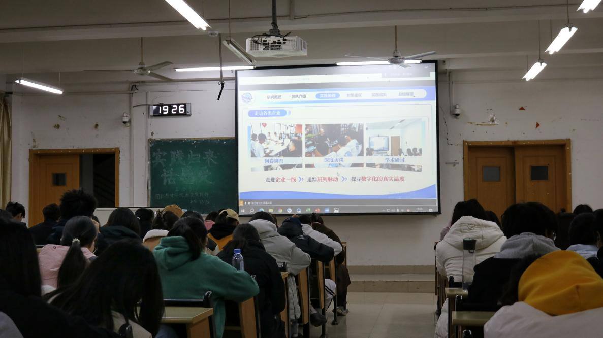 “习近平生态文明思想引领制造企业绿色低碳高质量发展团队”队长孙梦洁,详细介绍了团队的项目背景、团队构成、调研地点、核心内容及实践流程,分享了在企业走访、数据采集过程中的宝贵经验,并分享了精心制作的团队宣传片。片中丰硕的调研成果与昂扬的团队风采,为同学们树立了生动榜样,进一步激发了大家参与社会实践的积极性。