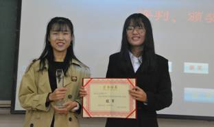 最终的颁奖环节,国际经济与贸易五班辩论代表队荣获冠军,国际商务一班辩论代表队荣获亚军,国际经济与贸易二班荣获季军。国际经济与贸易二班贾晓慧荣获全程最佳辩手称号。最后,2017级国际经贸学院辩论协会主席王文秋进行了总结发言,阐述了辩论的意义并对出席比赛的评委、嘉宾表示感谢。至此,国际经贸学院新生辩论赛结束。