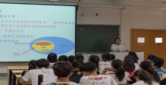 国际经贸学院学生会学习部干事介绍了学习部日常工作、日常活动以及与学习有关的各项事宜,就综合测评、学校奖学金评选、网上选课、补考和重修这四大方面进行重点讲解,并强调了学习成绩的重要性。生活部干事就贫困生评选、国家助学贷款以及各种类型的奖、助学金评选等方面进行了详细的讲解,并认真回答了同学们提出的问题。