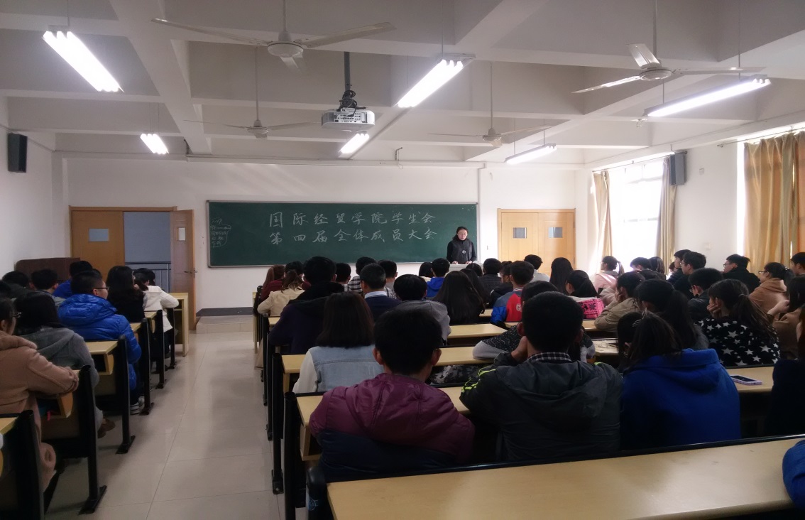 2015年11月17日,国际经贸学院召开第四届学生会全体会议,辅导员王斐斐老师以及第四届学生会全体成员出了会议。会议内容主要分为两个环节,第一环节辅导员王斐斐发表讲话,第二环节各部门进部门介绍。
