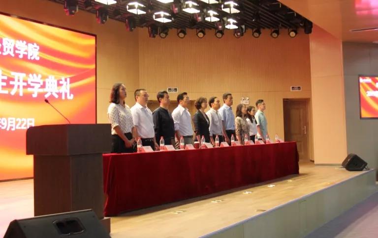 9月22日下午2时许,山东财经大学国际经贸学院2019新生开学典礼在圣井校区文化活动中心多功能厅举行。学院党委副书记郝秀峰主持,院党委书记邓迎迎,副院长朱庆华、王庭东、刘伟全,教师代表张绍辉等参加了典礼。
