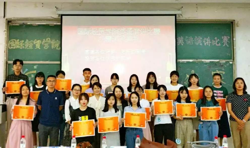 5月30日下午2时,由国际经贸学院学生会学习部和生活部承办的以 “扬国贸才气,育英语菁英,宏少年之志,展青春风采学生”为主题的英语演讲比赛决赛在圣井校区敏行楼举行。该比赛是我院“第二课堂成绩单”活动中系列专业技能竞赛之一。我院专业教师常雪老师与李真老师受邀担任决赛评委,学院团委书记蒋静,辅导员盛坤宇、李亚莉以及校英语联合会的部分同学担任嘉宾,学院部分学生观看比赛。