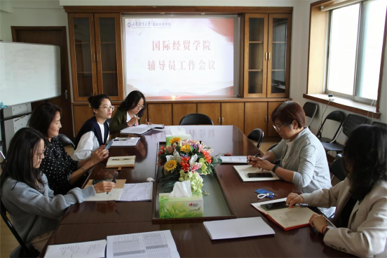 4月19日,国际经贸学院召开本月辅导员工作会议,学院党委书记崔东峰,副书记王斐斐和全体辅导员参加会议。