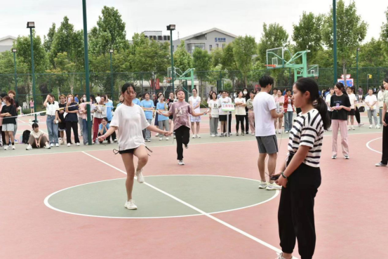 为推进校园体育文化发展,激发学生体育运动热情,5月25日下午,由2名引导员、13名运动员组成的国际经贸学院代表队参加了我校体育文化节—花样跳绳比赛。