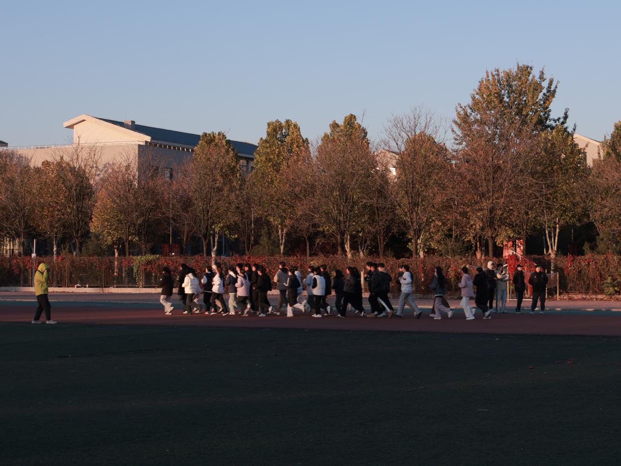 学院在组织学生晨跑期间,播放动感音乐,将音乐与运动相结合,将美育与体育相融合,充满韵律的音乐节奏与同学们奔跑的跑步声相互交织环绕,演奏出动听的青春旋律,成为晨曦中靓丽的风景线。