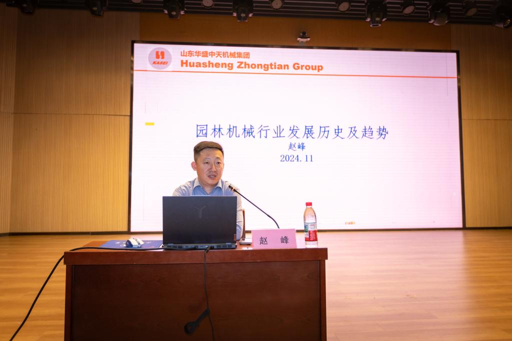 讲座伊始,赵峰校友以丰富的行业经验和独到的见解,为同学们开启了一场关于企业与行业发展的知识盛宴。他从山东华盛中天机械集团有限公司的发展历程讲起,详细介绍了公司产品品牌、企业荣誉、竞争优势、社会责任以及未来目标,帮助同学们了解企业业务方向、人才需求和招聘要求等。随后,他系统地阐述了园林机械行业的发展历史,深入浅出地讲解企业在行业的应用现状和发展趋势,鼓励同学们立足专业,学以致用,投身行业发展建设。最后,赵峰结合自身专业学习、工作经验以及多年来市场开拓海外、研发重大项目的职业经历,为同学们提出了几点建议:一是要辩证的看待公平,学会逆向思维;二是要做一个有担当有责任感的人;三是要养成终身学习的习惯,在瞬息万变的时代浪潮中保持竞争力;四是要学会做好财务规划、情绪管理和健康管理。互动环节,同学们围绕行业发展前景、职业规划方向、企业用人标准等踊跃提问,赵峰用实际工作中遇到的真实案例细心解答,现场气氛热烈。