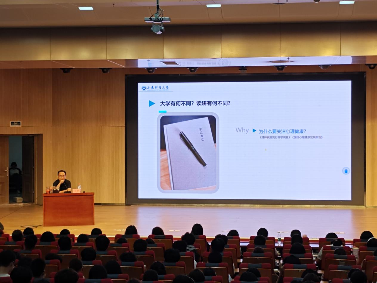 随后,孙鹏进一步阐释了开展大学生心理健康教育的重要意义,讲解了“心理健康”“心理问题”与“心理疾病”的界定标准和核心区别,帮助新生学会以客观、理性的视角看待自身心理状态。