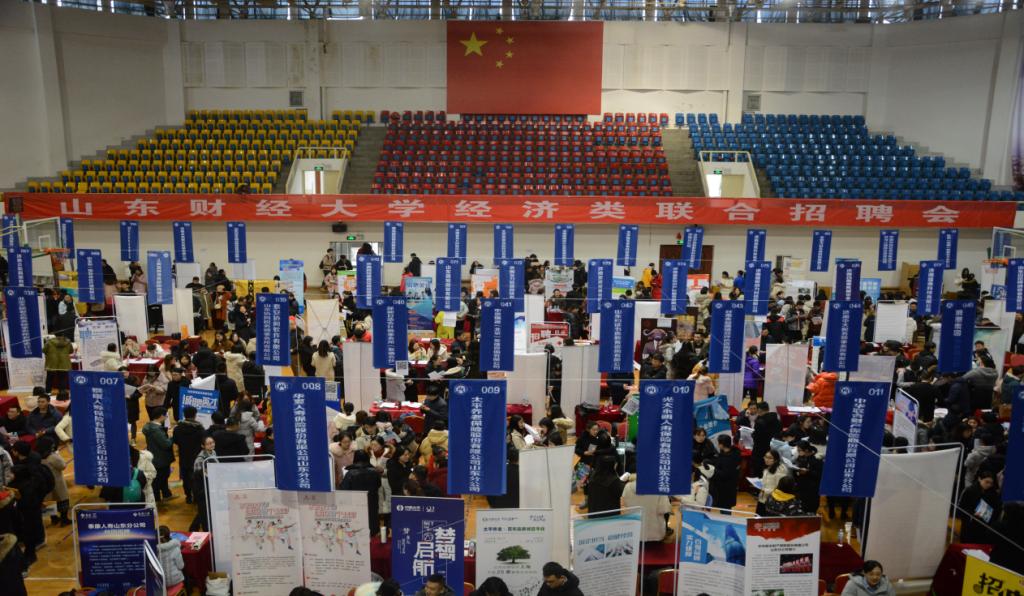 1224日上午,由山东财经大学就业指导处、国际经贸学院、保险学院和财政税务学院联合举办的山东财经大学经济类联合招聘会在舜耕校区体育馆顺利举行。山东财经大学就业处处长杨哲,副处长杜丽娜、周广春,综合事务科主任何峰,国际经贸学院党委书记邓迎迎,副书记张桂美、郝秀峰,就业办主任滕晖,保险学院、财税学院相关领导老师,莅临招聘会现场,详细了解企业的招聘岗位与同学们的招聘意向。