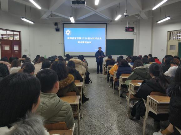 为进一步促进就业,提升就业质量,帮助学生明晰职业发展,山东财经大学国际经贸学院2020届本科毕业生就业推进会议于12月23日上午在舜耕校区金融楼6116举行,山东财经大学国际经贸学院党委书记邓迎迎、副书记郝秀峰出席会议并讲话,滕晖老师,毕业班各班班长、团支书及全体舍长参加会议。会议由郝秀峰主持。