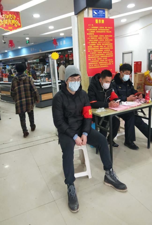 A:我是在我爷爷奶奶家的镇上,从24号开始放宽出入。所以镇政府安排了一些宣传,有一些特定的车辆在镇上进行流动宣传。为了提醒居民不要放松警惕,出门要带戴口罩等,刚开始我是跟着宣传车进行宣传的。因为要上网课,所以我就不能整天跟着那些宣传车辆,之后就被调到超市去了,主要负责测量体温和监控出入人员是否有戴口罩。