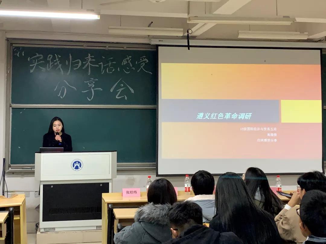 为推动2020年暑期三千计划实践活动的展开,11月28日晚6点,国际经贸学院学生会创实部于圣井校区闻道楼340教室举办第一期“三千计划实践归来话感受”分享会。三千计划优秀实践团队代表和国际经贸学院2019级全体学生参加了本次活动。