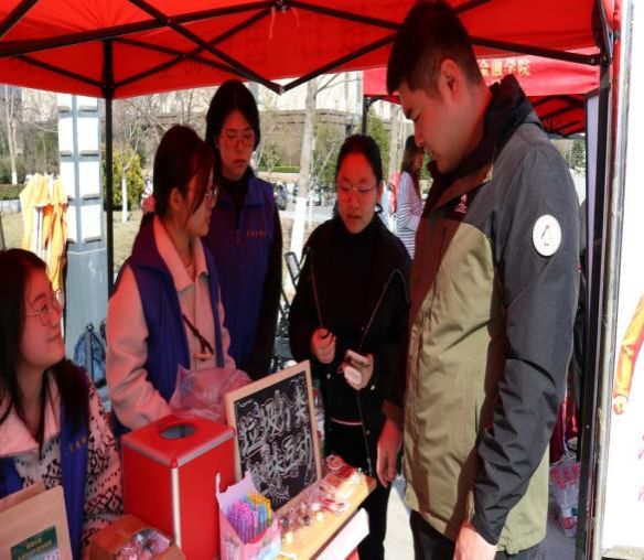 三月春风拂满园,雷锋精神育新篇。为深入学习贯彻习近平总书记关于弘扬雷锋精神的重要论述,推动学雷锋志愿服务在校园常态化、特色化开展,3月19日下午,由校团委主办的“奉献之光”雷锋主题游园会在章丘校区地标广场温情启幕。国际经贸学院“小蓝贸”志愿服务队积极响应校团委号召,精心筹备、主动参与,以志愿宣讲、手工义买、知识普及、温情留言四项特色活动,将雷锋精神融入趣味互动与公益实践,用青春行动传递温暖力量,让志愿微光汇聚成照亮校园的温暖星河。