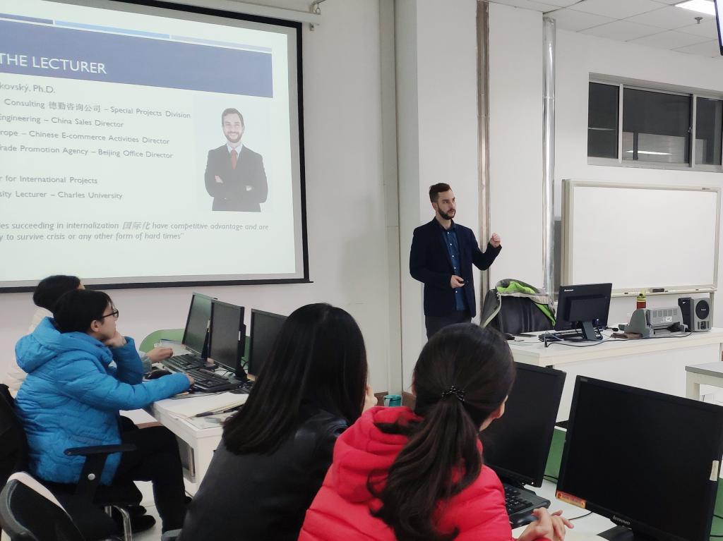 白子捷博士在布拉格经济大学攻读硕士、博士期间曾多次赴我校访学以及调研,也曾先后作为交换老师和项目执行老师访问我校,分别为我院国际商务、国际贸易等专业的研究生进行了“国际商务运营”、“中捷经贸合作模式比较”以及“国际商务项目管理”等课程进行集中授课,与我院师生建立了深厚的感情,为促进我院的国际化办学做出了较为突出的贡献。