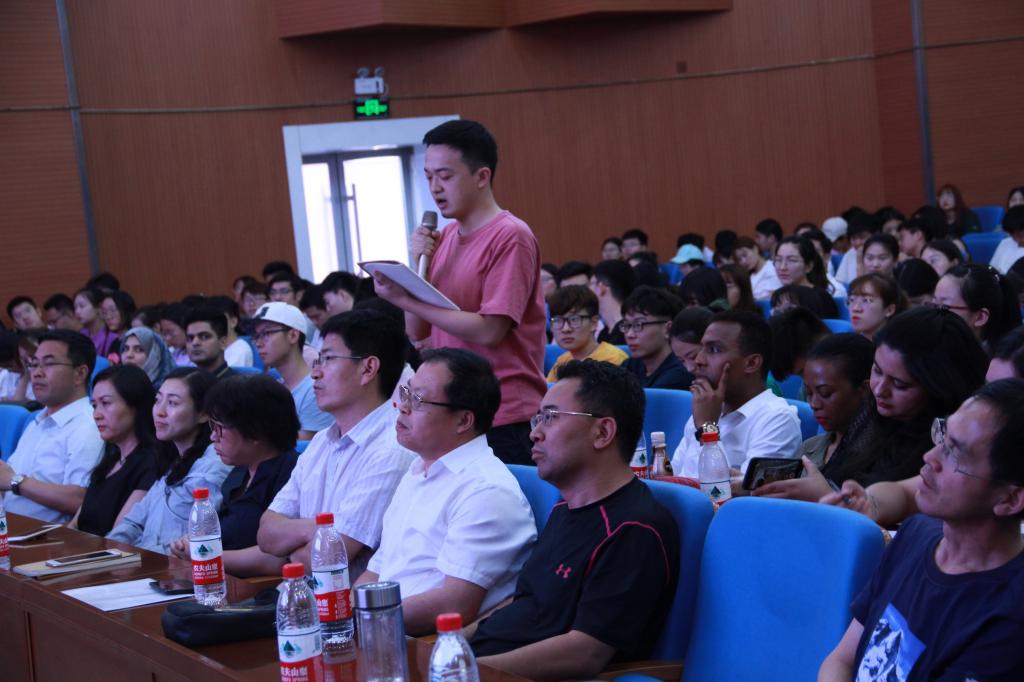 阿普恰乌利从“一带一路”倡议的开放机制、目前中美、美俄、美国与欧盟、欧盟与俄罗斯之间的新一轮的国际关系、中国对亚洲基础设施投资银行的巨大贡献、“一带一路”倡议的核心理念、贸易自由化的推进等层面积极肯定了“一带一路”倡议的国际地位。同时,他认为对于如此丰富的资源流动进行高质量、有序化管理以及风险的控制和防范尤其重要。他还强调随着国际交往越来越频繁,文化的融合日益重要,“一带一路”沿线包含了欧洲(中东欧)、中亚(阿拉伯)、东南亚、非洲、中国等多元文化,面对多元化的全球经济合作阿普恰乌利提出了自己的建议。在提问环节,现场的中外同学针对“一带一路”倡议实施中遇到的资源管理问题、格鲁吉亚与周边国家在“一带一路”倡议框架下的合作关系等进行了提问,阿普恰乌利耐心地一一给予解答。
