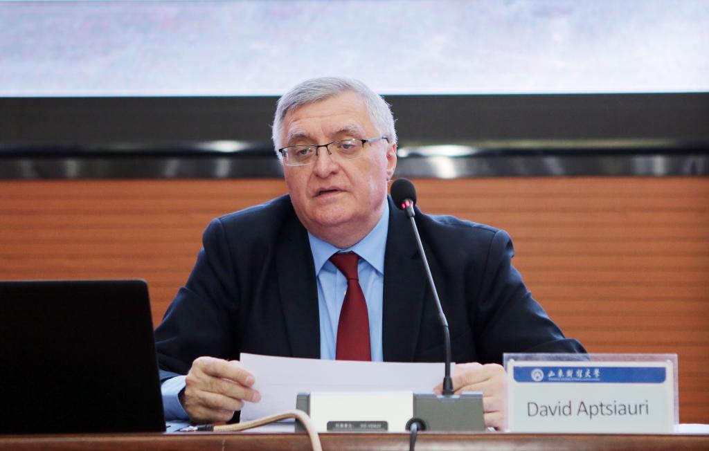 赵忠秀对客人的来访表示热烈欢迎,介绍了我校的基本情况,并就山东省及中国贸易现状和遇到的问题,以及“一带一路”倡议进程与大使交换了意见。韩作生向客人介绍了我校建校历史、学科及国际化发展近况,对比了中格两国教育体系,表示期待两国在教育和人才培养方面建立多样合作。阿普恰乌利感谢学校的热情接待,介绍了格鲁吉亚高等教育体制和学科优势,就“一带一路”倡议在世界的发展现状进行了分析,希望格鲁吉亚优秀高校可以与我校合作培养国际化管理人才,以助力“一带一路”体系不断完善壮大。
