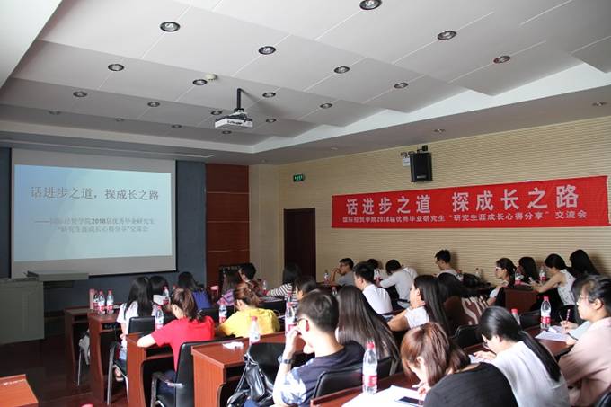 毕业之际,根据学校党委学生工作部(处)的统一安排,在学院领导、老师、研究生会及全体研究生的大力支持下,于6月8日下午,举办了主题为“话进步之道,探成长之路”2018届优秀毕业研究生“研究生涯成长心得分享”交流会。交流会在舜耕校区研究生楼MBA教室进行,邀请了2015级博士毕业生钱进,硕士毕业生王俊力、江璐作为主讲嘉宾,由国际经贸学院副教授刘鲁浩进行点评。