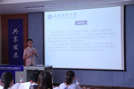 经专家评审,经济学科组本届论坛共选出18篇优秀论文,作者来自14所高校。经济分论坛安排10位优秀论文作者做现场展示交流,作者分别来自西南财经大学、首都经贸大学、中国海洋大学、湖南科技大学、上海对外经贸大学、南京财经大学、安徽财经大学和山东财经大学。10位同学分享了他们的论文选题依据、研究方法和研究结论。这些论文涉及金融改革、绿色发展、对外投资、保险定价等领域,较好地体现了相关领域最新的研究进展,体现出作者较为扎实的经济学理论功底和对经济学研究方法的较好把握。