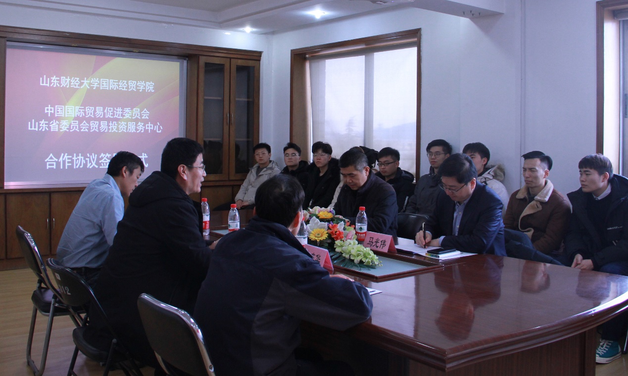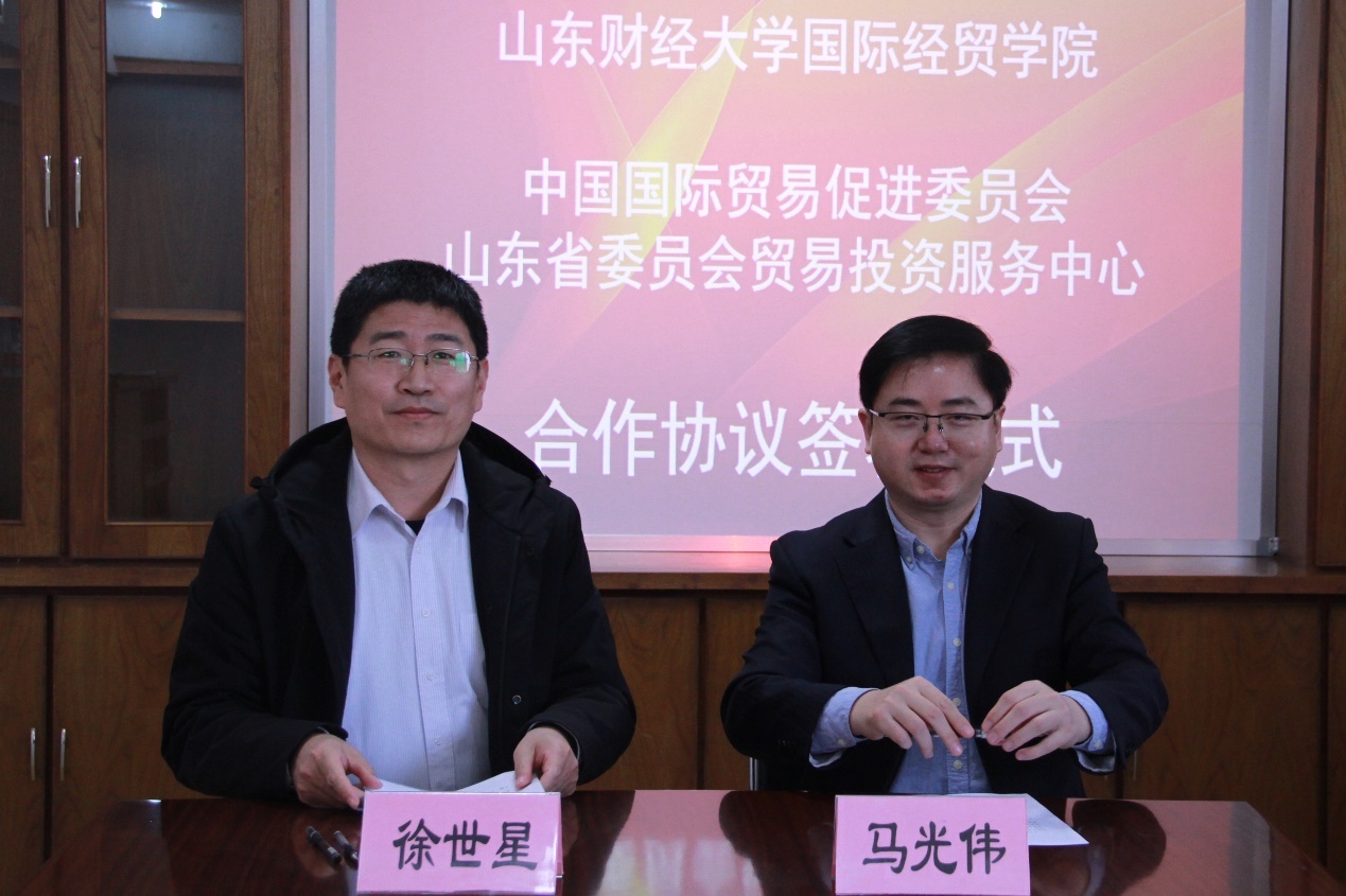 12月17日下午,国际经贸学院与山东省贸促会贸易投资服务中心在舜耕校区办公楼508室签署国际商务硕士研究生联合培养协议。山东省贸促会贸易投资服务中心马光伟主任和李海民副主任、国际经贸学院党委徐世星书记、朱庆华副院长和刘伟全副院长出席签字仪式。仪式由朱庆华副院长主持,徐世星书记和马光伟主任先后致辞。徐书记在致辞中向来宾介绍了国际经贸学院概况和学科优势与特色,对山东省贸促会贸易投资服务中心对我校国际商务硕士研究生培养的支持表示感谢,希望双方务实合作,大力推进产教融合,不断提高应用型人才培养质量。马主任介绍了贸促会在促进我国对外贸易和投资发展中的职能定位和独特作用,表示要以协议签署为契机,加强多层次合作,为培养高层次国际商务人才做出贡献。