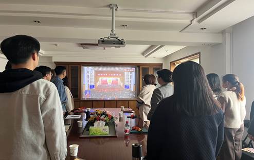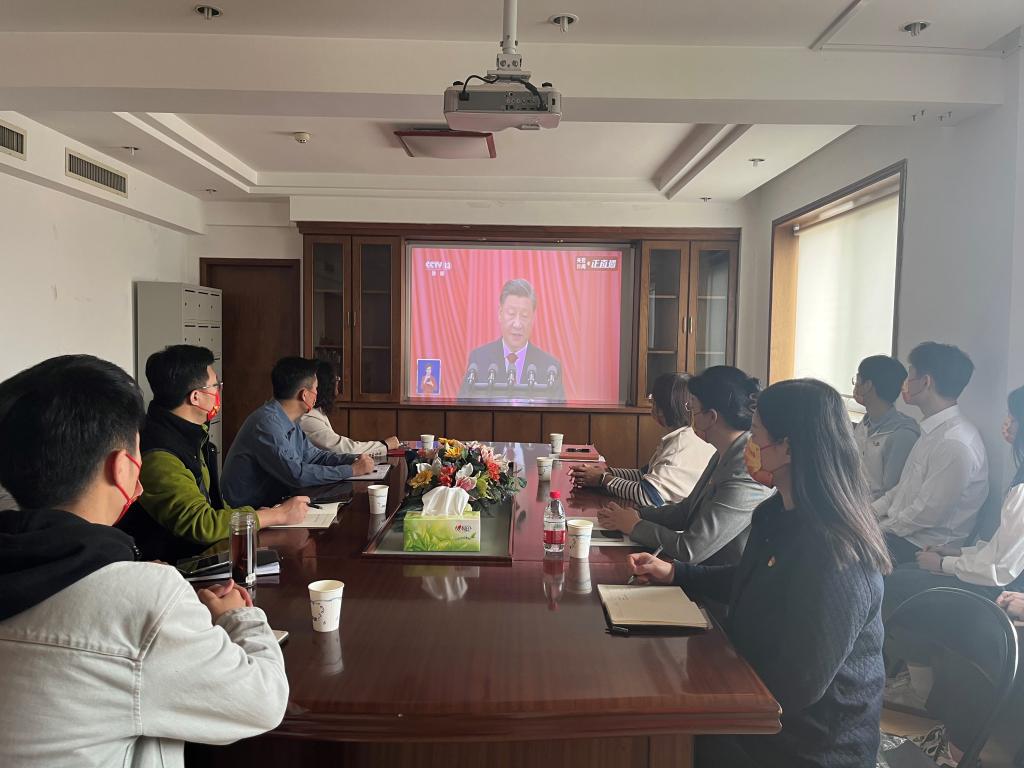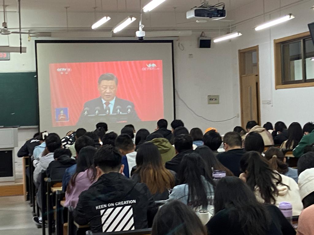 10月16日上午10点,国际经贸学院领导班子成员和部分师生党员代表在办公楼508会议室集中收看中国共产党第二十次全国代表大会开幕会直播。大家仔细聆听习近平总书记所作的报告,认真记录、深受鼓舞,不时爆发出热烈的掌声。