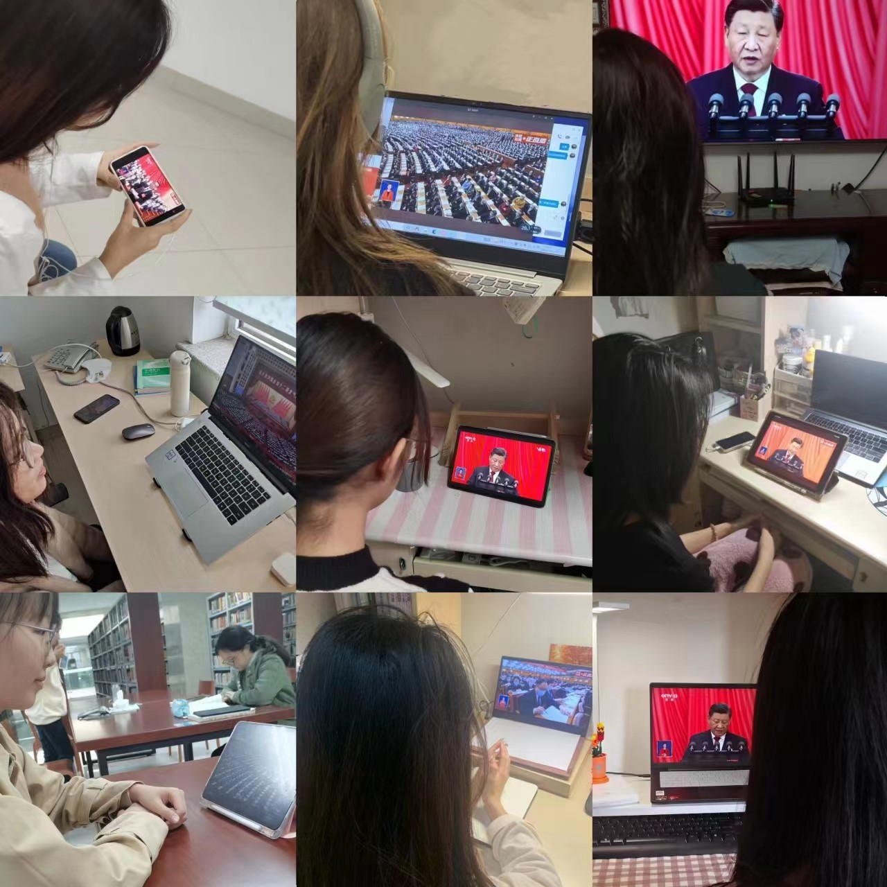 除集中收看外,我院还在舜耕校区、圣井校区教室设立分会场,组织广大学生党员、共青团员一同收看。其他同学在宿舍、图书馆等地观看了开幕式。研究生党支部副书记姜欣欣、2020级本科生王冰笛在观看开幕会后心潮澎湃,她们表示:广大同学深受大会报告中关于“青年强,则国家强”“当代中国青年生逢其时,施展才干的舞台无比广阔,实现梦想的前景无比光明”等表述的鼓舞,作为学生党员要认真学习领会大会精神,坚定不移听党话、跟党走,立志做有理想、敢担当、能吃苦、肯奋斗的新时代好青年,让青春在全面建设社会主义现代化国家的火热中绽放绚丽之花。