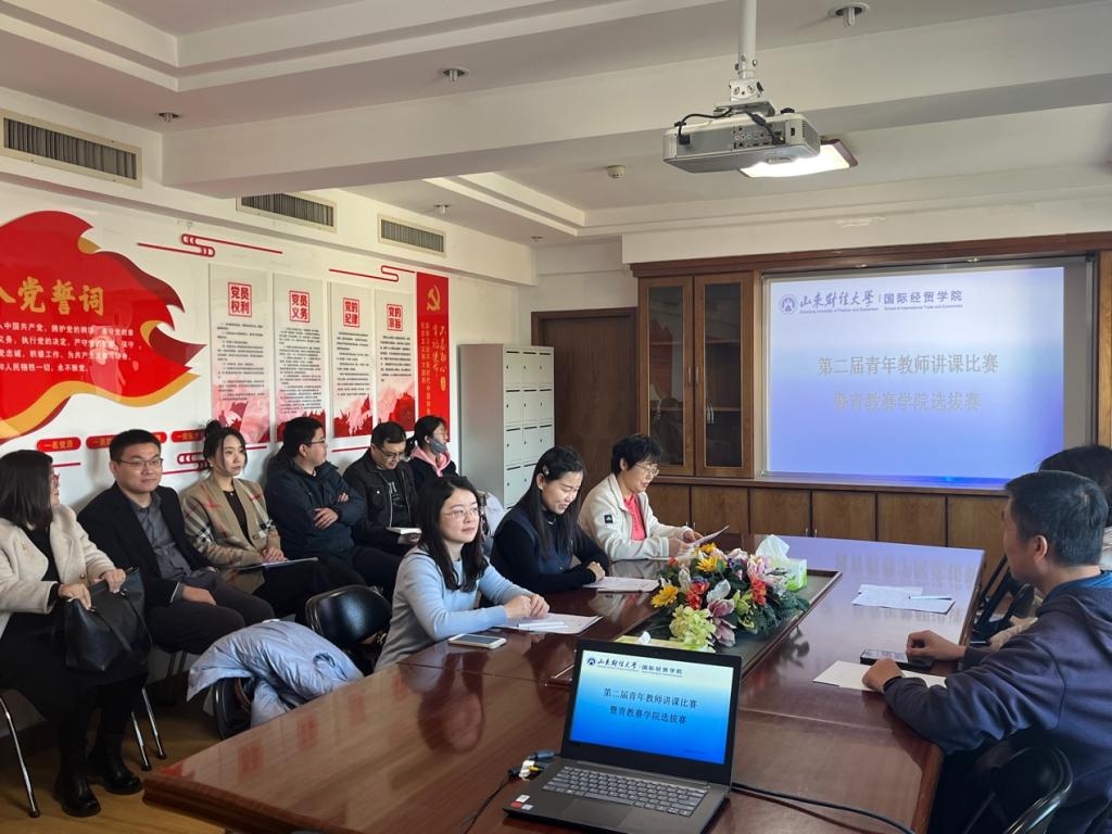 各参赛教师充分展示了自己认真准备的成果。经过紧张的比赛,现场打分、计分,牟进进获得一等奖,赵胜立和王彬获得二等奖,张翠燕和黄炳凯获得三等奖,并推荐牟进进代表学院参加山东财经大学2023年度青年教师讲课比赛的决赛。赛后,评委们和参赛教师进行了热烈而充分的座谈交流,张照玉作为评委代表肯定了所有参赛青年教师的表现,重点从课程设计、教学节奏、课堂重点把控等多个方面给参赛教师提出了改进意见和建议。