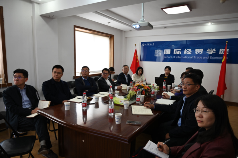 洪俊杰听取汇报后对学院的整体工作及取得的成绩表示肯定,并围绕学科布局、人才培养、科研创新、国际化特色建设等方面就学院的未来发展提出新的要求。他指出,国际经贸学院要紧跟国家战略,聚焦学科发力点,致力于打造中国对外开放经济学新体系;要强化服务国家和区域经济社会发展需求,提高科研创新能力及社会服务能力;继续推动有组织的科研,深入开展跨学科交叉融合与合作;充分发挥学院在国际化方面的特色优势,强化高质量拔尖人才培养质量。最后,洪俊杰强调,国际经贸学院要立足现有建设基础和成绩,充分发挥大院优势,坚持稳中求进、以进促稳,为学校建成新时代高水平财经特色名校贡献新的力量。