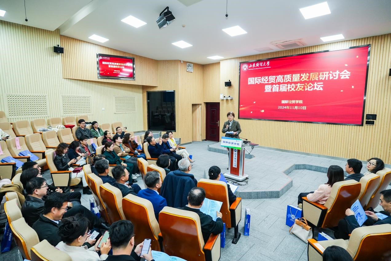 院长方慧向广大校友介绍国际经贸学院近年来在教学、科研、社会服务等方面取得的显著成就。希望通过此次论坛汇聚各位专家学者、行业精英及校友的智慧,共同探讨和分享国际经贸领域的最新发展、教育理念和实践经验。同时加强与校友联系,促进产学研合作,为学院的长远发展注入新动力。