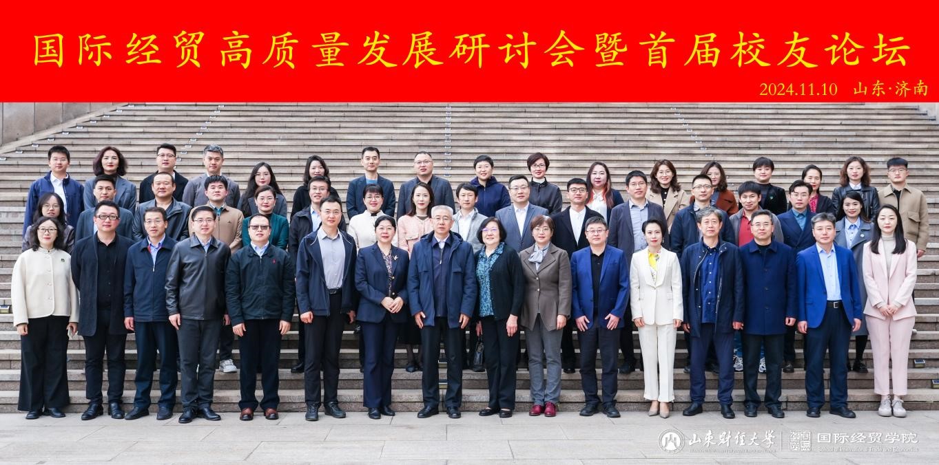 11月10日,国际经贸学院召开高质量发展研讨会暨首届校友论坛,来自全国各地的 40 余名优秀校友代表受邀回到母校,共叙情谊,共话发展,共谋未来。校党委委员、副校长张新受邀出席会议并致辞。学院原院长时英、合作发展处处长徐超、副处长邵伟然,曾在学院工作过的领导、老师,学院师生代表50余人一同出席盛典。活动由学院党委书记崔东峰主持。