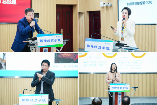 主题研讨会上,89级校友崔剑锋、95级校友王巧莲、01级校友袁方、03级校友刘斌分别以《创业的坑和校友的情——分享我的创业小故事》、《如何更好利用香港优势,助力企业出海》、《新三分类背景下信托服务实体经济的场景及模式》、《对标高标准国际经贸规则,推动高水平制度型开放》为题,从数字经济、新质生产力、绿色经济等不同维度,畅谈未来经济社会发展趋势。