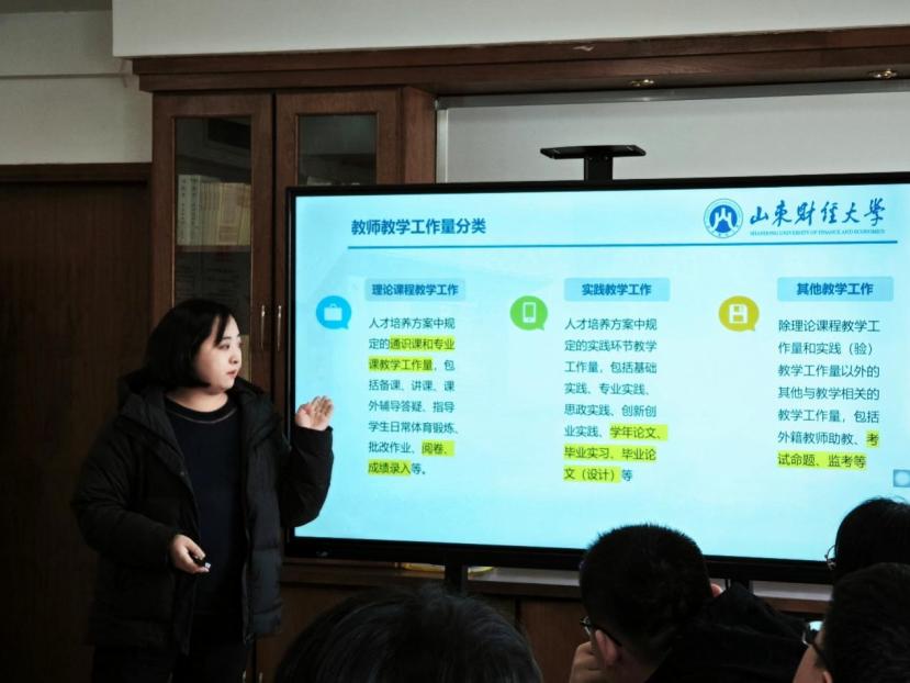 跨境电子商务系主任刘宁围绕理论与实践教学工作展开详细说明。在理论教学方面,期末考试与监考工作是重点,刘宁通过详实数据展示过往教学成果与问题,为青年教师提供宝贵经验。实践教学中,学年论文、毕业论文与毕业实习指导至关重要,她以数据为支撑,阐明实践教学在学生能力培养中的关键作用,为青年教师指明实践教学努力方向。