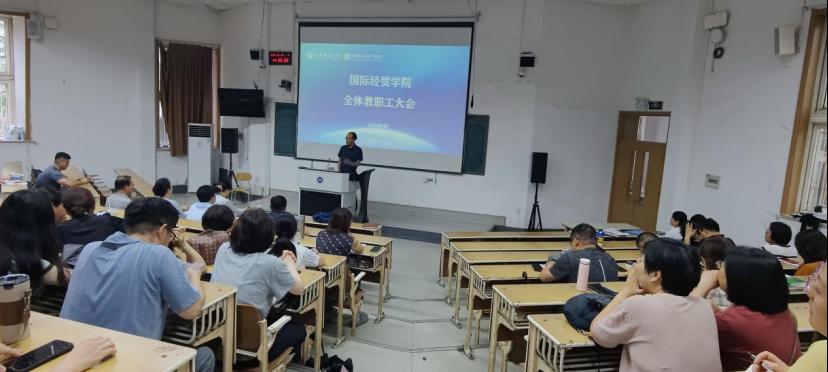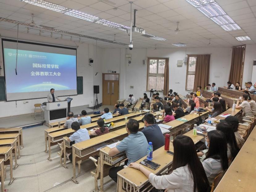 6月26日下午,国际经贸学院在舜耕校区第二阶梯教室召开学期末全体教职工大会,学院领导班子成员及全体教职工参会,会议由院长方慧主持。