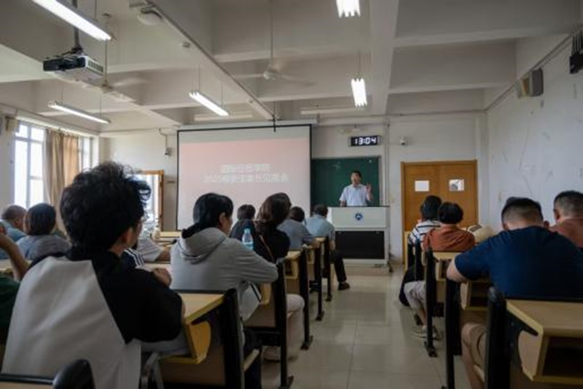 为深化家校协作、凝聚立德树人共识、促进学生健康成长,8月30日下午,国际经贸学院于1号教学楼308教室召开2025级本科新生家长见面会。学院党委副书记郝秀峰、25级新生辅导员王思远、国际经济系的副主任赵胜立、专业教师张潇叶及新生家长参与本次会议,开启家校共育新篇章。辅导员王思远主持本次会议。