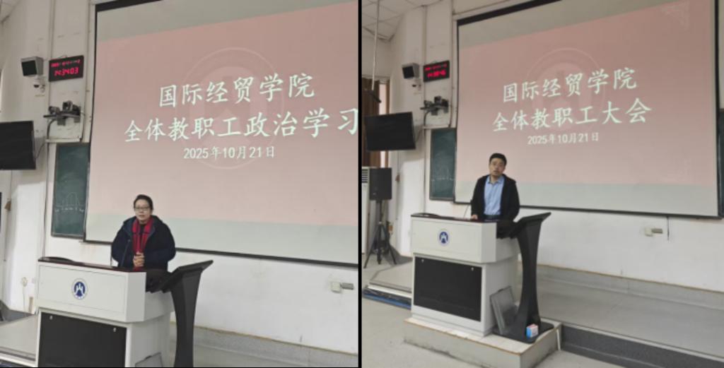 10月21日下午,国际经贸学院于舜耕校区第二阶梯教室召开全体教职工大会。学院全体领导班子及全体教职工参会。大会由院长方慧主持。