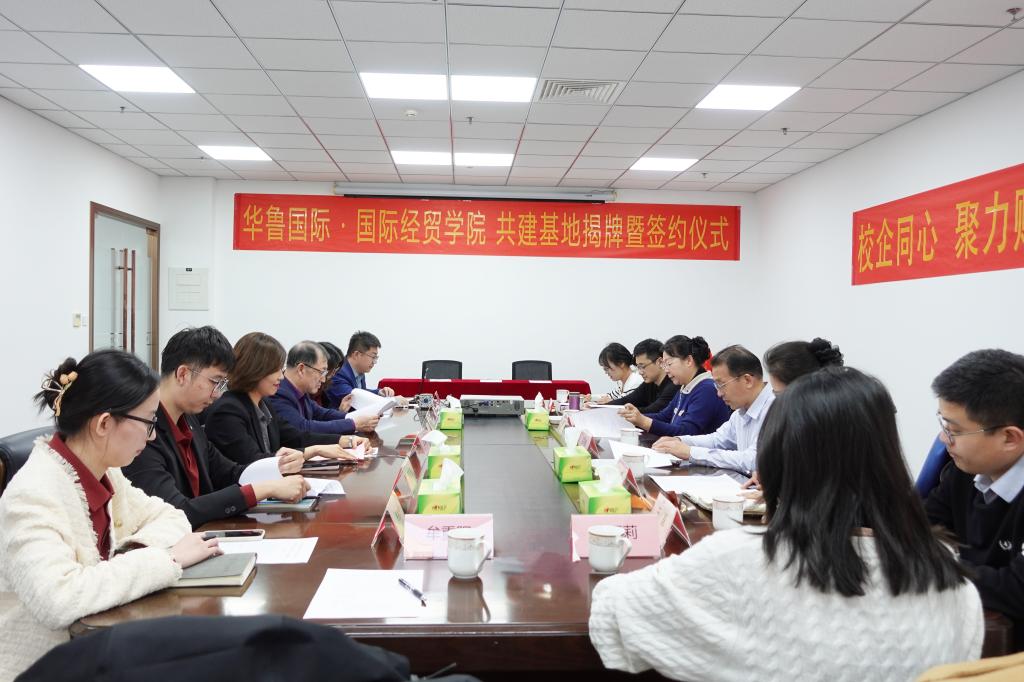方慧简要介绍了国际经贸学院的发展历程,详细阐述了学院在学科建设、专业特色、人才培养、科学研究、国际交流及社会服务等方面的显著成果。她指出,此次与山东华鲁国际贸易有限公司的合作,是学院深化实践教学改革、打通“校园到职场”衔接通道的关键举措。她希望未来在共建实践教学体系、搭建双向交流平台、构建就业联动机制、达成“产学研用”合作等方面展开深入合作。