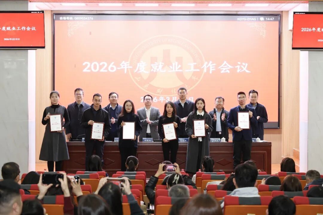 3月19日下午,学校在燕山校区3号楼报告厅召开2026年度就业工作会议。会上,我院凭借2025届毕业生就业工作的扎实成效与突出表现,获评“山东财经大学2025年度就业工作先进单位”;学院教师王思远荣获“山东财经大学2025年度就业工作先进个人”称号。