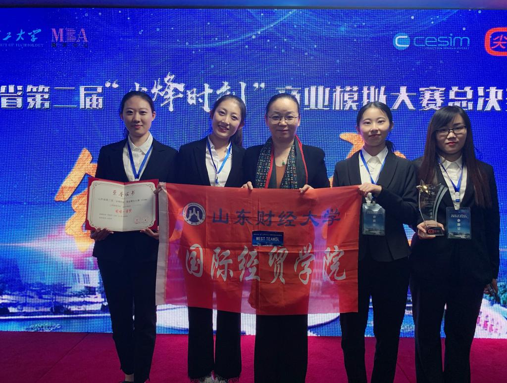 2019年11月8日-11日,在山东理工大学举行的山东省第二届“尖峰时刻”商业模拟大赛暨第十二届“尖峰时刻”全国商业模拟大赛山东赛区选拔赛中,我院刘新英教授指导由国际商务专业硕士(MIB)2019级王心雨、陈廷伟、吴昊淼和王婕四位同学组成的山东财经大学West Team战队,经过六轮12个战队间的激烈模拟商战,取得了大赛一等奖的好成绩,同时获得了参加全国商业模拟大赛的资格。