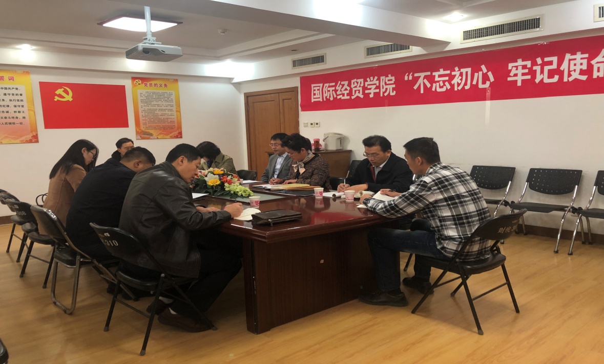 10月28日上午,国际经贸学院“不忘初心、牢记使命”主题教育调研成果交流会在508会议室举行。学校主题教育第二巡回指导组组长刘旻航,纪委办公室主任高磊,纪委王丽娜同志出席此次调研成果交流会。汇报会由党委书记邓迎迎主持,院长王培志,党委副书记张桂美、郝秀峰,副院长朱庆华、刘伟全一同参加交流会。
