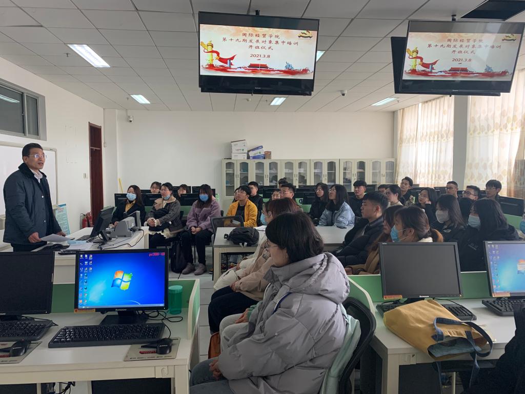 按照学校党委组织部和学院党委工作部署,国际经贸学院于2021年3月8日在舜耕校区举办了第十九期党员发展对象集中培训班开班仪式。开班仪式由学院专职组织员王思远主持,党委副书记郝秀峰出席仪式并做了讲话,国际经贸学院第十九期党员发展对象参加了开班仪式。