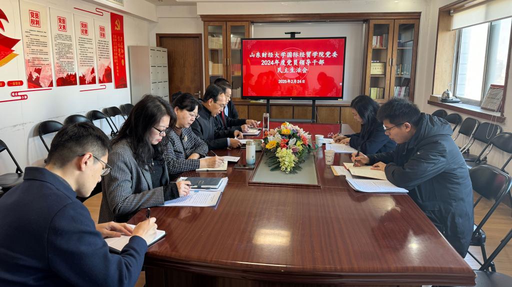 2月24日上午,国际经贸学院2024年度党委领导班子民主生活会在舜耕校区办公楼5楼会议室召开。由校机关党委书记、党委组织部副部长付亚、党政办公室正科级干部朱海林组成的指导组到会指导。学院党委书记刘波主持会议,党委领导班子成员参加会议。